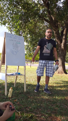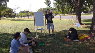 “Sou Artur. Aqui era um PG com meus filhos quando eles eram crianças. Este PG aconteceu em agosto de 2022. Fizemos o estudo na praça em Brasília; colocamos cartazes com mensagens evangelísticas para as pessoas que passavam lessem. Agora já concluímos nosso PG com todo material do CAMP; meus filhos estão firmes em Cristo! Minha gratidão a Deus e ao CAMP Brasil por nos dar uma oportunidade de falar de Jesus de uma forma tão direta aos nossos filhos.”