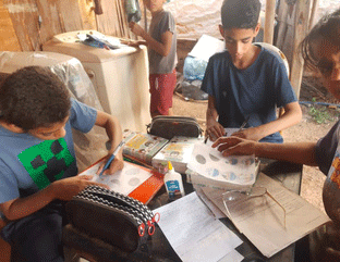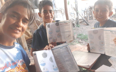 Preparando a lição do próximo encontro com Josimário e Gustavo, no Assentamento Tiradentes. Atualmente eles são colideres, e ministram lições dos módulos do projeto Lado a Lado, no PG do bairro Zumbi dos Palmares.