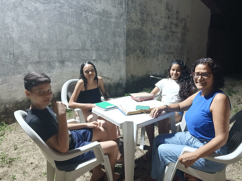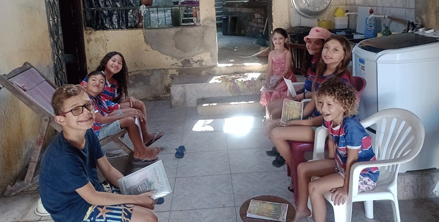 Dia de jogo entre Fortaleza e Ceará, e as crianças me pediram para terem o estudo antes do jogo. Que lindo, tiveram esta atitude em vez de simplesmente faltarem. Isso mostra o quão sedentas do conhecimento de Deus elas estão! Sou grata a Deus pelo apoio daqueles que oram e ofertam ao ministério!