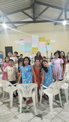 “Meu nome é Sara e eu tenho 11 anos. Eu faço parte de um PG que me deu boas amizades e também me fez aprender sobre a palavra de Deus. É muito bom ouvir da palavra de Deus e fazer amizade. Eu amo o PG!”